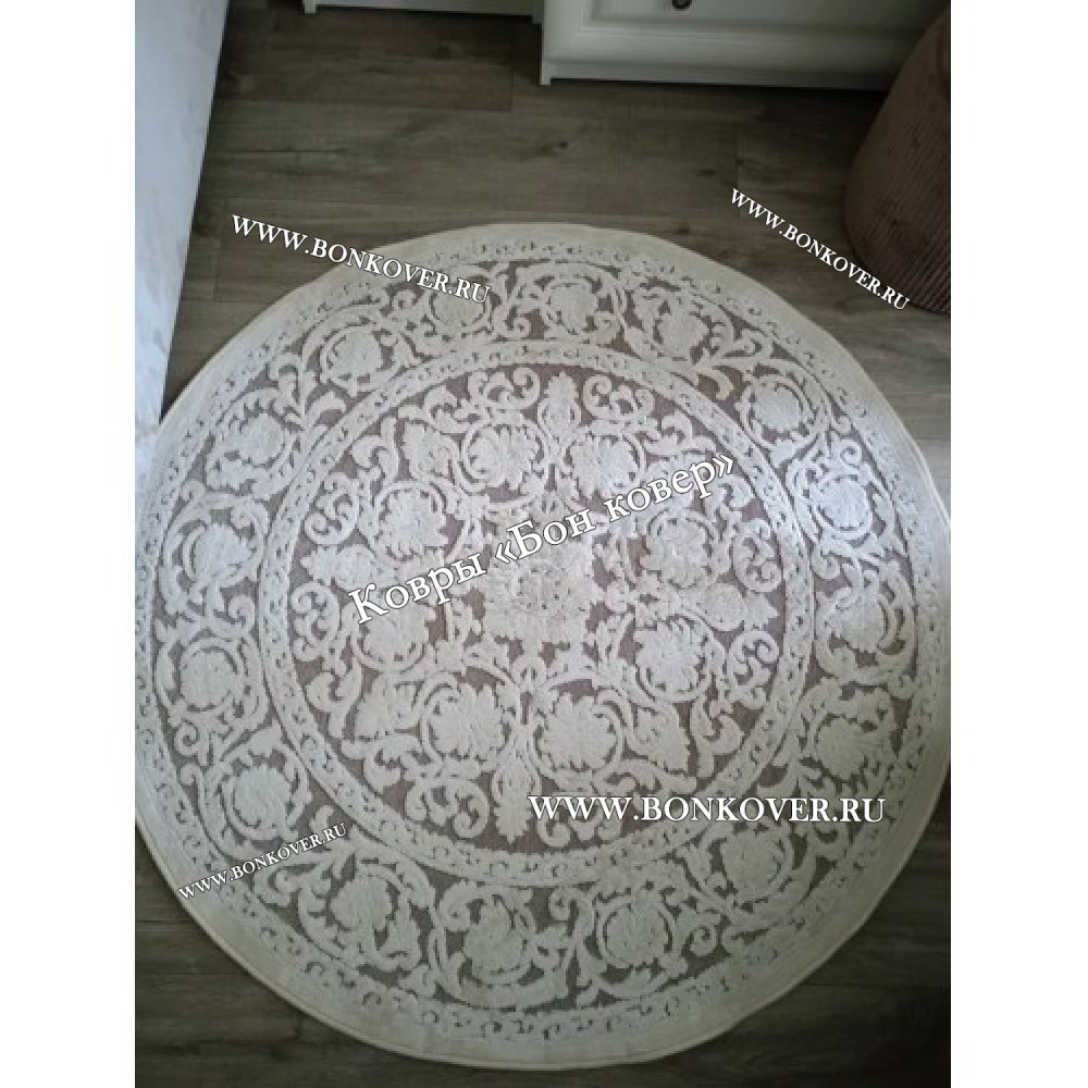 Шикарный Круглый Белый Шелковистый Ковер Дизайн 30542 наполняет интерьер гостиной теплом и уютом, гармонично сочетает в себе изящество и стиль. Он изготовлен из современных материалов, комфортный и долговечный.